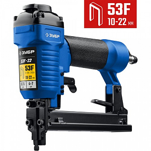 Пневматический степлер (скобозабиватель) ЗУБР 53F-22, скобы тип 53F (10-22 мм), Профессионал, 31935