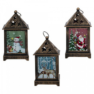 Изделие декоративное "Фонарь" (подсветка, 3хLR44), L6,5 W6,5 H13,5 см, 3в.