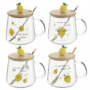 Кружка с крышкой и ложкой, 350 мл, L13 W9 H12,5 см, 4в.