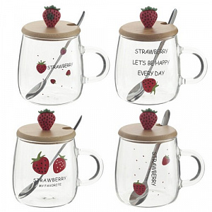 Кружка с крышкой и ложкой, 500 мл, L12 W8 H12,5 см, 4в.