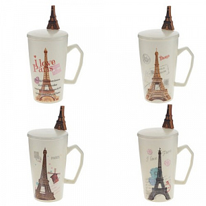 Кружка с крышкой и ложкой, 300 мл, L10 W8 H13 см, 4в.