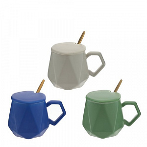 Кружка с крышкой и ложкой, 450 мл, L14 W9 H9,5 см, 3в.