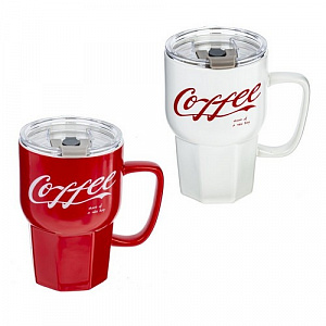 Кружка с крышкой и трубочкой, 500 мл, L12 W10 H13,5 см, 2в.