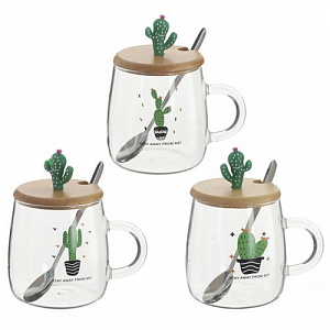 Кружка с крышкой и ложкой, 470 мл, L11 W8,5 H13 см, 3в.