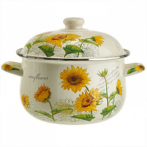 MetaLLoni EM-1511 Кастрюля эмалированная с эмалированной крышкой 3,6 л,d=22см,"Подсолнухи"(6)