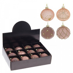 Украшение новогоднее "Шар", набор из 12-ти шт, D 8 см, L35 W25 H8,5 см Стекло