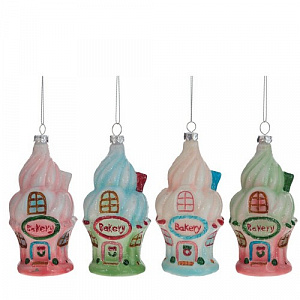 Украшение новогоднее "Домик", L6,5 W6,5 H13,5 см, 4в.