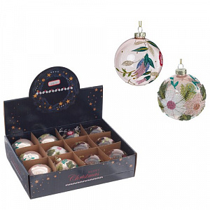 Набор из 12шт Украшение новогоднее "Шар", D 8 см, L34 W25 H9 см Стекло