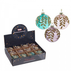Набор из 12шт Украшение новогоднее "Шар", D 8 см, L34 W25 H9 см Стекло