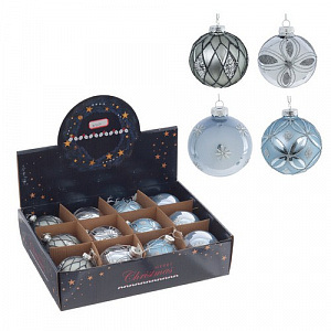 Набор из 12шт Украшение новогоднее "Шар", D 8 см, L34 W25 H8 см Стекло