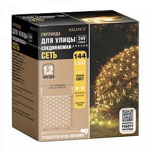 BALANCE 24V Электрогирлянда-конструктор "Сеть" 144 теплых LED ламп, прозрачный провод, 1,2*1,5 м /32/4