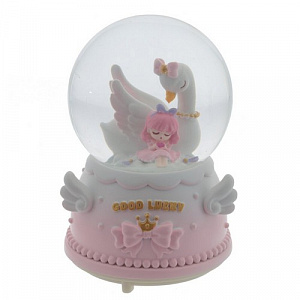 Фигурка декоративная "Девочка с лебедем" в стекл шаре (муз, подсвет, 2xAAA н/п), D8 см, L9 W9 H13 см
