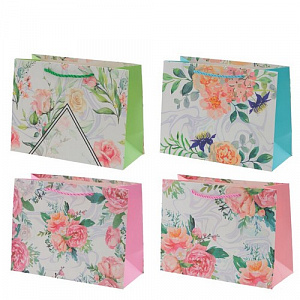 Пакет подарочный (бумага 210г/м2, блок микс 12шт), L24 W10 H18 см, 4в.