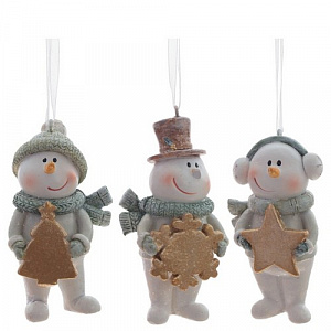 Изделие декоративное подвесное "Снеговики", L4 W3 H8,5 см, 3в.