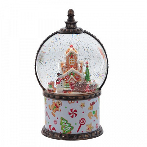 Фигурка декор в шаре "Пряничный дом" (подсвет, муз, вьюга, движ, AAх3 н/п +USB 100 см), L13 W13 H21