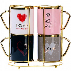 12092 Набор кружек с подставкой 5 пр 350мл фарфор/металл LR (х8)