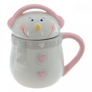 Кружка с крышкой "Снеговик меломан", 400 мл, L12,5 W9 H14 см