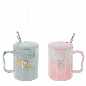 Набор из 2-х кружек с крышкой и ложкой, 400 мл, L11,5 W8,5 H10,5 см