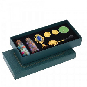 Набор для сургучной печати: ложка, воск, свеча, печать, 2 штампа, L23 W11 H4 см