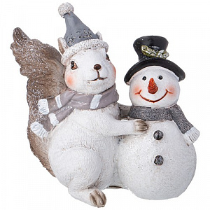 ФИГУРКА "БЕЛКА СО СНЕГОВИКОМ" 14,5*7*14 СМ