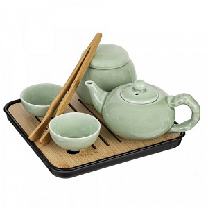 Набор для чайн церем на 4 перс, (чайник 220мл, 4 чашки 45мл, емкость/чая, подставка), L22 W22 H11 см