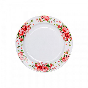 Тарелка мелкая 240 мм Розовые розы бортовая Гладкий край