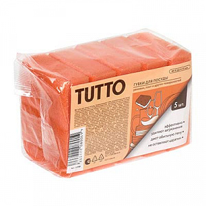 Губка для мытья посуды, 8*6*2,5 см, 5 шт, оранжевые Tutto