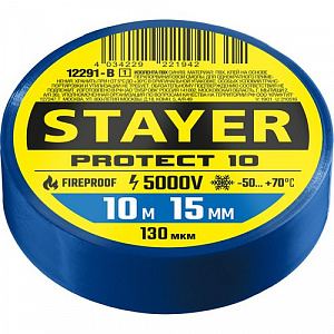 STAYER изолента ПВХ PROTECT-10, 15 мм х 10 м, 5 000 В, синяя(12292-B)