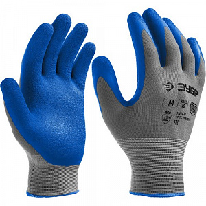 ЗУБР M (8), перчатки с тонким рельефным латексным покрытием, противоскользящие, 15 класс (11274-M)