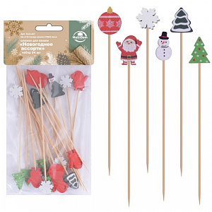 Шпажки для канапе "Новогоднее ассорти". Набор 24 шт. Длина 12 см. NEW