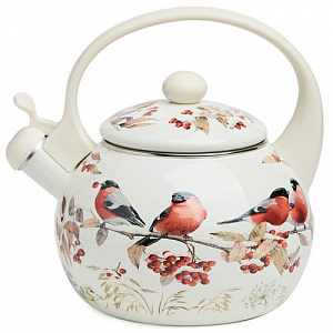 ЧАЙНИК AGNESS ЭМАЛИРОВАННЫЙ СО СВИСТКОМ СЕРИЯ "СНЕГИРИ", 2,2Л, ИНДУКЦИОННОЕ ДНО