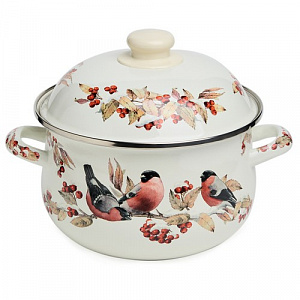 КАСТРЮЛЯ AGNESS ЭМАЛИРОВАННАЯ С ЭМАЛ.КРЫШКОЙ СЕРИЯ "СНЕГИРИ", 2.8 Л, 20*12 СМ