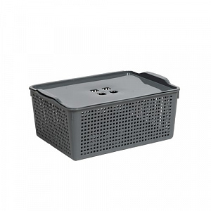Корзинка "Лофт" 13л 395х272х168 мм с крышкой (серый)