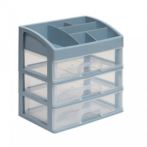 Органайзер для косметики 3 ящика (серо-синий/прозрачный)