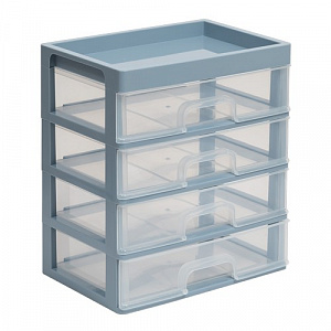 Органайзер для мелочей 4 ящика (серо-синий/прозрачный)