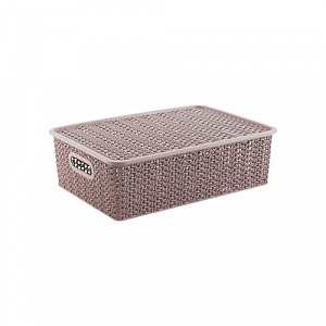 Корзинка "Вязь" 7,5л 350х 245х105мм с крышкой (розовый нюд)