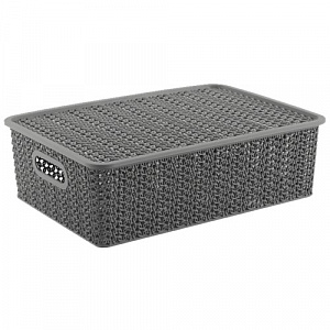 Корзинка "Вязь" 7,5л 350х 245х105мм с крышкой (серый)