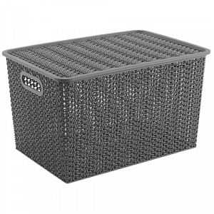 Корзинка "Вязь" 14л 350х245х205 мм с крышкой (серый)
