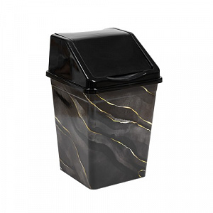 Ведро для мусора с подвижной крышкой 5л квадратное с декором "Черный мрамор"