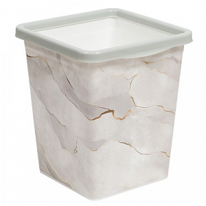 Ведро для мусора с фиксатором квадратное 14л с декором "Белый Мрамор"