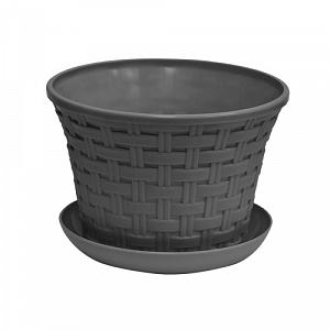 Кашпо круглое "Ротанг" 1,1 л с поддоном (серый)