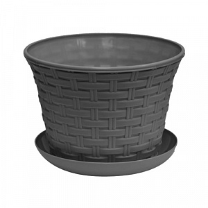 Кашпо круглое "Ротанг" 2,1 л с поддоном (серый)