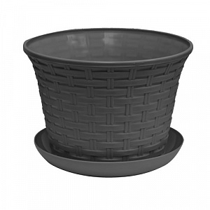 Кашпо круглое "Ротанг" 3,0 л с поддоном (серый)