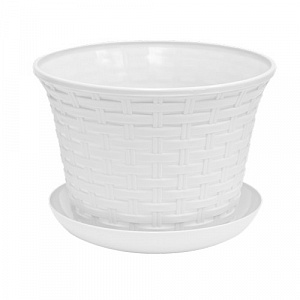Кашпо круглое "Ротанг" 4,0 л с поддоном (белый)