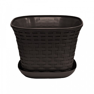 Кашпо квадратное "Ротанг" 4,6 л с поддоном (венге)
