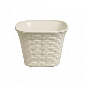 Кашпо квадратное "Ротанг" 4,6 л с поддоном (слоновая кость)