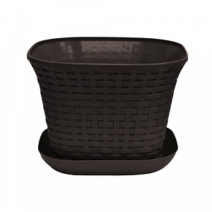Кашпо квадратное "Ротанг" 6,9 л с поддоном (венге)