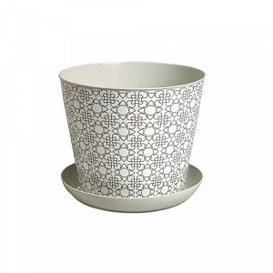 Кашпо круглое 6.5л. декор "Этника" с поддоном(светло-серый)