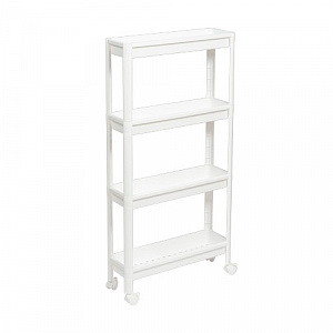 Этажерка VIKEA узкая 4-х ярусная на колесах (белый)
