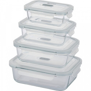 64-204 Набор 4пр. контейнеров прямоугольных, стекло (0,4л;0,6л;1л;1,5л) Linea Desco